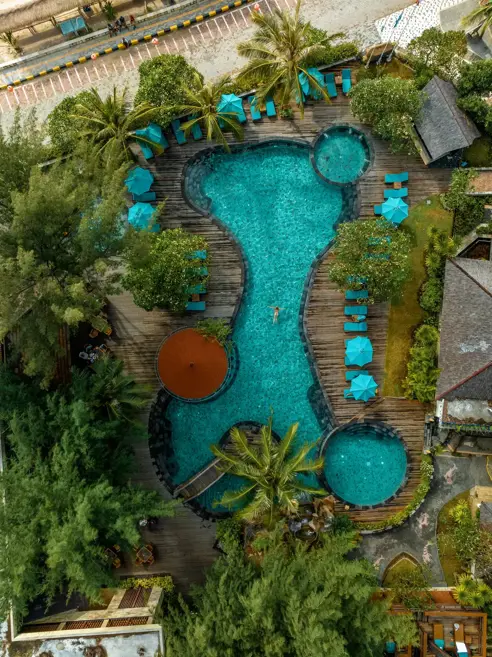 Resortet ligger vakkert til på nordvestsiden av øya og byr på både restaurant, barer og et nydelig bassengområde med utsikt over havet, naboøyene Gili Meno og Gili Air, samt Lomboks imponerende fjell i horisonten.
